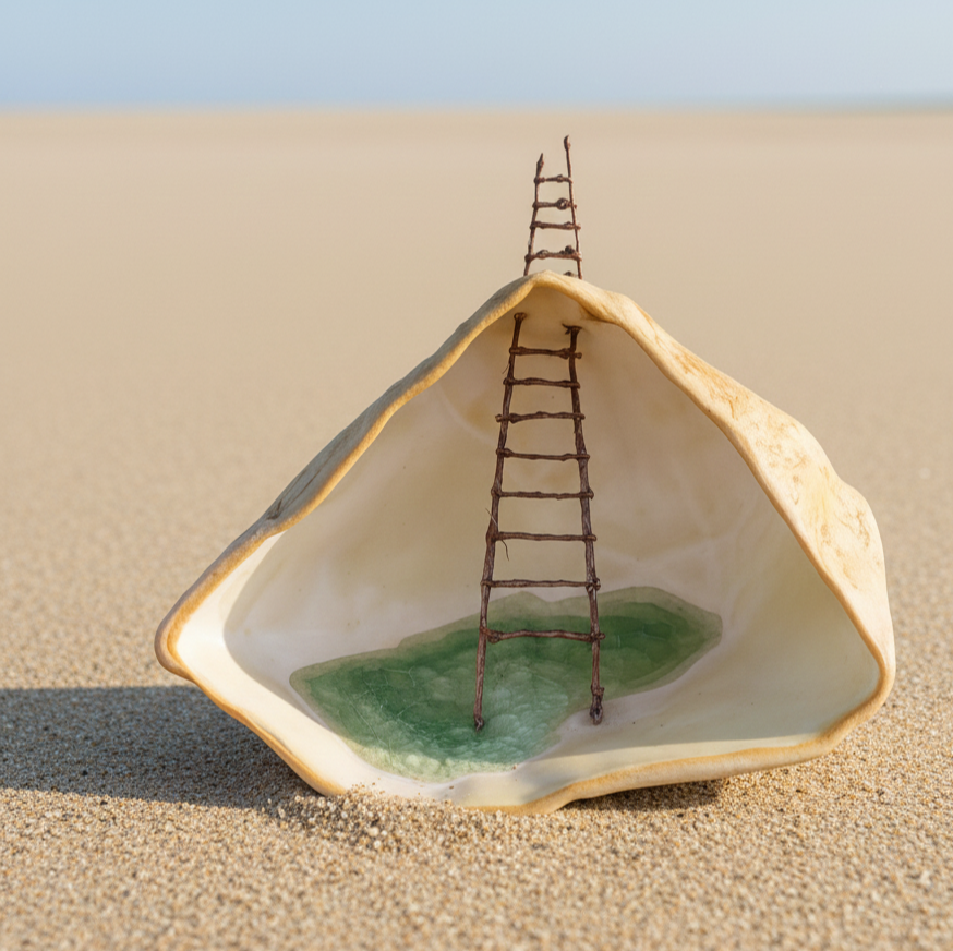 בסדרת *עולמות* אני יוצרת, עולמות זעירים החבוקים בתוך חלל אבן אורגני המזכיר צדף. העבודות ממזגות בין המציאות לדמיון, ויוצרות נופים מיניאטורים השולחים מבט למרחבי עולם פנימי.